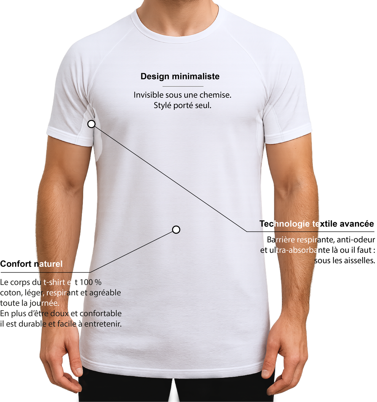 Plus d’auréoles visibles. Un confort maîtrisé, une allure propre du matin au soir.